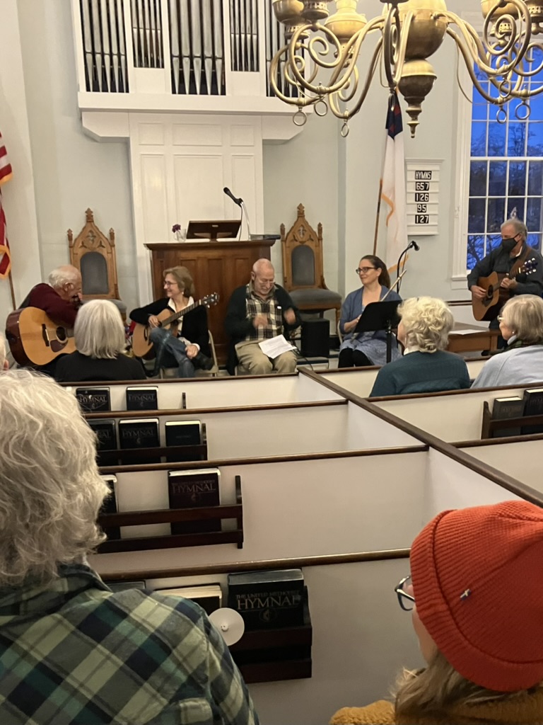 The night was special, the last ‘Offering” of the year and a special tribute to Warren Doty, who has participated with his musical group, the Loon Lane Players since the inception of the Offerings. Warren organized the offerings this year as well. With failing health, Warren watched the evening on Zoom and his daughter, Laura, stood in for him and his banjo with her flute and lovely voice.